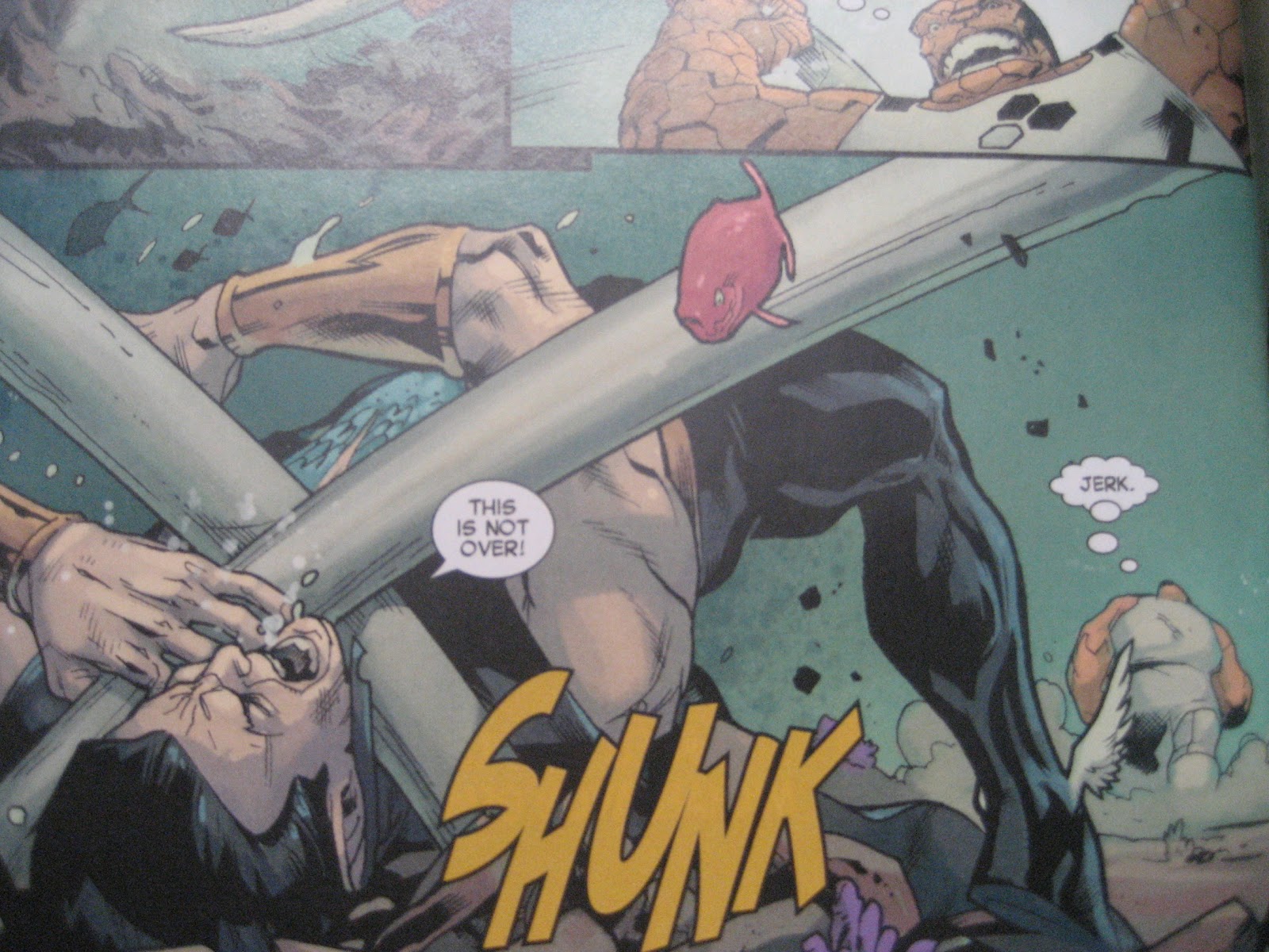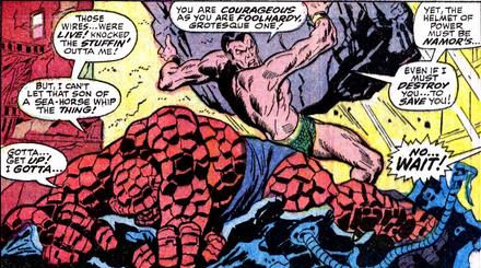 | This page pretty much sums it up when a land-dweller like the Thing tries to challenge the might of the Sub-Mariner under the sea. |